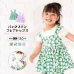 子供服 フレアトップス バックリボン ノースリーブ 女の子 かわいい ガールズ キッズ ジュニア ベビー 花柄 総柄 チュール 子ども こども 夏服