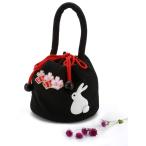 七五三 こども用 わらべくらぶ ちりめん素材 巾着 ハンドバッグ うさぎ ブラック sb-31-d