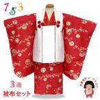 京都室町st. 七五三 着物 3歳 女の子 被布コートセット(合繊)シンプル 古典柄「紅白、鞠」HDHF01