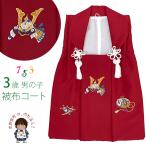 京都室町st. 被布 単品 七五三 3歳 男の子 刺繍入り 被布コート 被布着 合繊「赤、兜と小槌」ibh502