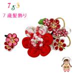 京都室町st. 七五三 髪飾り 7歳 女の子 パッチン留め・コーム 髪飾り 2点セット「赤系、ちりめん八重花」OKKM729
