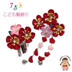 京都室町st. 七五三 髪飾り 3歳 7歳 女の子 子ども髪飾り パッチン留め 摘み花飾り 2点セット「赤xピンク、梅」OKKM732