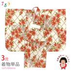 七五三 着物 7歳 女の子用 小紋柄 四つ身 単品 子供着物(合繊) 襦袢付き「クリーム、ピンク牡丹」T7K-2548