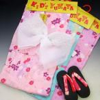 京都室町st. 子供浴衣セット 絞り染風女の子浴衣 120サイズ&兵児帯2点セット「白地、雪 ピンク」SRYa-12-P18-40