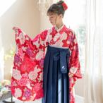 キャサリンコテージ Catherine Cottage 簡単着付けの袴セット (猫と芍薬赤×紺袴[E3])