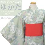 【100サイズ・10】ナチュラル系 女児浴衣 ハーブ・グリーン 100cm 肩上げ済み・腰上げ済み・付け紐付き 綿100%