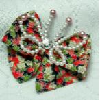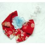 七五三女児用リボンとパールの髪飾り 203 赤色 友禅柄 ゆうパック発送
