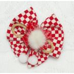 七五三 女児用縮緬の髪飾り 211 化繊 赤・白の市松 ゆうパック発送