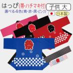 (メール便送料無料)お祭り半纏(はんてん)・法被(はっぴ)子供大サイズ(丈58cm、身幅43cm)帯・鉢巻付き(青・赤・黒・ピンクの選べる4色)