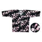 子供 法被 半纏 半被 半天 袢天 (ピンク/黒) 綿100% 桜柄 祭り 衣装 祭禮 イベント 夏祭り 秋祭り まつり はんてん ハッピ