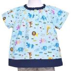 半袖スモック サバンナ横断どうぶつ大行進 ライトブルー スモック 幼稚園 子供 キッズ