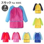 スモック キッズ 子供用 男の子 女の子 袖付き 長袖 エプロン 割烹着 無地 防水 汚れ防止 ポケット付き 料理 お絵かき 砂遊び お手伝い 食事