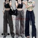 レディース カーゴパンツ ロングパンツ ボトムス ワークパンツ ワイドパンツ きれいめ ゆったり 体型カバー 低身長 ヒップホップ ダンス衣装 お洒落 夏