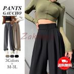 ガウチョパンツ レディース 大きいサイズ ハイウエスト ゆったり ワイドパンツ ロングパンツ リラックスパンツ 着痩せ 細身 美脚 脚長 大きいサイズ