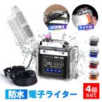 電子ライター 4個セット 充電式 プラズマ 防水仕様 USB 充電式 ダブルアークライター ガス オイル 不要 軽量?薄型 持ちやすい 無炎 防風 おしゃれ お墓参り bbq