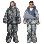 迷彩寝袋 マント式 アウトドア保温 携帯シュラフピークル 登山キャンプ旅行に 非常用にも使える 防寒対策であったか 体を包んで動きやすいミリタリースタイル