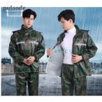 メンズ 迷彩ワイルドデザインレインウェア 雨 合羽 上下セット 旅行 レジャー イベント 防災 災害 強力防水 通勤 通学 作業 カモフラ