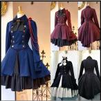 膝丈ワンピース 軍服風 ロリータ ワンピース ゴスロリ ドレス 長袖 コスプレ 衣装 制服 スカート4色