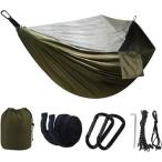 ハンモック 蚊帳付き 虫対策 パラシュート 通気 快適 軽量 4点セット 収納袋付き カラビナ付き 野営 ソロキャンプ ハイキング 蚊帳付きハン