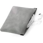 イヤホンケース ポーチ 小さめ 有線 イヤホンポーチ レザー素材 耐衝撃 防水 保護ケース 滑り止め MDM(グレー, Large)