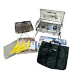 ■UNIFLAME US-1900 ツーバーナー ファイアグリル セット 収納バッグ付 焼け跡多 傷汚れあり キャンプ用品2235981
