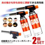 2個セット ガスバーナー トーチ アウトドア 炙り キャンプ 火起こし バーベキュー 自動着火 カセットガス用 ワンタッチ 火力調節 クッキングバーナー AUTOFIRE