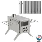 薪ストーブ 折りたたみ キャンプ 耐熱ガラス?煙突?スパークアレスター?グリッド棚付き コンパクト アウトドア ウッドストーブ テント用 焚き火台 BBQ 調理 暖炉