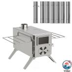 薪ストーブ 暖炉 焚き火台 煙突付き アウトドア まきストーブ ステンレス鋼 薪 折りたたみ脚 耐熱ガラス クッキング 二次燃焼 庭の暖炉 キャンプ bbq 調理 コー