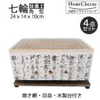 本格 珪藻土 角型七輪 OF7RK 網付 角アミ・火箸・敷台 角型ワイド 41cm × 24cm 炭火 長角 木炭コンロ 真ん中仕切り 火鉢 木炭 豆炭 やきとり