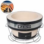 三河焼 しちりん じゅうじゅう 黒 台、アミ止め付 珪藻土 三河粘土使用 七輪 コンロ 国産 業務用 KA0023