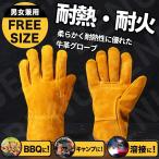耐火 グローブ 耐熱 手袋 軍手 キャンプ アウトドア BBQ 焚火 作業用 牛 皮 革 フリーサイズ バーベキュー