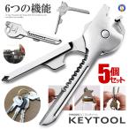 5個セット 多機能 鍵型 ミニ マルチツール 6つの機能 携帯 キーホルダー キーリング ステンレス ドライバー 栓抜き 便利 持ち運び シルバーカラー DL-KEYTUUL