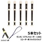 【 ソプラノ リコーダー 130G 、ネックストラップ (SRS01) 5本セット 】ゼンオン ジャーマン式 ソプラノリコーダー (グリス、掃除棒、合皮ソフトケース付属)