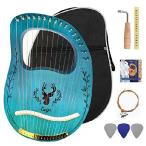 【並行輸入品】 Lyre Harp 16 Strings: Solid Mahogany Wooden Body Metal Strings Musical Instrument - Accessory with Tuning Wrench and Durable Gig Bag