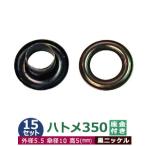 ハトメ 350 #350 片面 5.5mm ブラック 黒ニッケル 15セット入1袋 1セット 2パーツ(本体 座金 各15)外径 5.5mm 傘径 10mm 高 5mm 真鍮 黒ニッケルメッキ