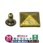 飾りカシメ 特大角ピラミッド アンティーク 頭13.6mm 幅8mm 高8mm 真鍮製 50セット入