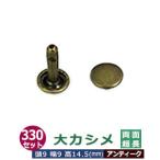 大カシメ 両面超長足 アンティーク 頭9mm 幅9mm 高14.5mm 鉄製 330セット入