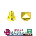 飾りカシメ 特々小角ピラミッド ゴールド 頭4.2mm 幅4mm 高4mm 真鍮 80セット入
