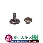 特小カシメ 片面長足 4.6mm ブラック 黒ニッケル 300セット(頭足 各300) 頭4.6mm 幅6mm 高6mm 真鍮 黒ニッケルメッキ 極小カシメ 足長6mm 装飾金具 パーツ