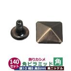 飾りカシメ 角ピラミッド 黒ニッケル 頭10mm 幅8mm 高8mm 真鍮製 140セット入