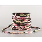 ちりめん丸ひも・柄・4ミリ(実寸約5-6ミリ) 流水桜・黒 10cm単位 切り売り
