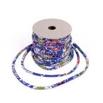 ちりめん丸ひも・柄・8ミリ(実寸約8-10ミリ)絢爛小紋・青 10cm単位 切り売り