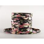ちりめん丸ひも・柄・8ミリ(実寸約9-10ミリ) 流水桜・黒 10cm単位 切り売り