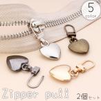 ジッパープル ジッパータブ 2個セット ハート ファスナー プルタブ スライダー チャック シッパーヘッド 引き手 金属製 メタル かわいい 部品 付