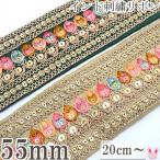 インド刺繍リボン スパンコール付チューリップ型ライン刺繍リボン 幅55mm 10cm単位 切り売り (20cm以上) [在庫限り]