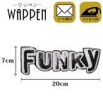 ワッペン 大きい ビッグサイズ スパンコールワッペン 縦7×横20cm 英語 FUNKY アイロン接着可能 ハンドメイド オリジナルバッグ作成に メール便