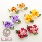 2個入り フラワー パーツ ダブルカラー モチーフ 花 立体 サテン ハンドメイド クラフト 手作り 手芸 アクセサリー ヘアゴム 貼り付け デコレーション