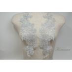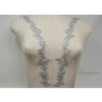 チュールコード刺繍モチーフ 1対 花 シルバーxグレー ラインストーン装飾 (MFLC72SVHWJL)