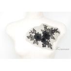 チュール刺繍花びら立体モチーフ 黒A 1枚 (MTHA92BKBH0A)