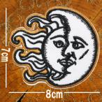 刺繍 アイロン ワッペン【月と太陽】ブラウン 黒 白 糊付き のりつき アイロン接着 アップリケ パッチ モチーフ タトゥー柄 飾り 手芸